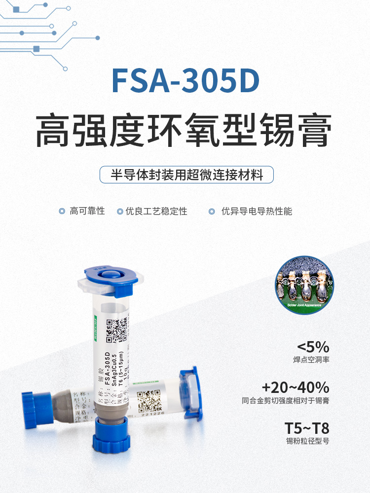 環(huán)氧樹脂錫膏,焊點(diǎn)加固,絕緣性加強(qiáng),適用微間距,工藝簡化提升效率,包括規(guī)模商用的 6號(hào)粉、7號(hào)粉、8號(hào)粉,以及尖端應(yīng)用9號(hào)和10號(hào)粉